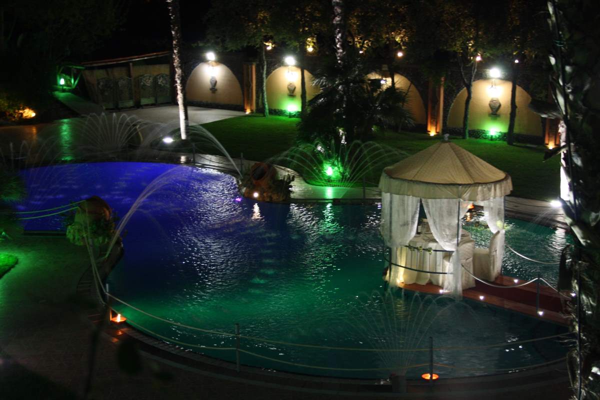 Giochi d'acqua, acquari e cascate al fine di un incantevole scenario e un'atmosfera impeccabile.